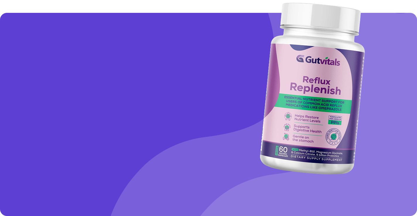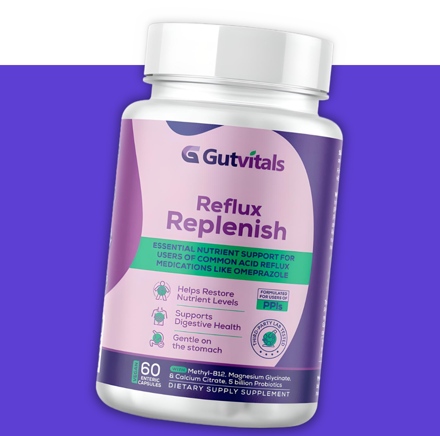 Introducing Reflux Replenish by Gutvitals – The Only Supplement Specially Developed to Replenish Key Nutrients Depleted by PPI Use.